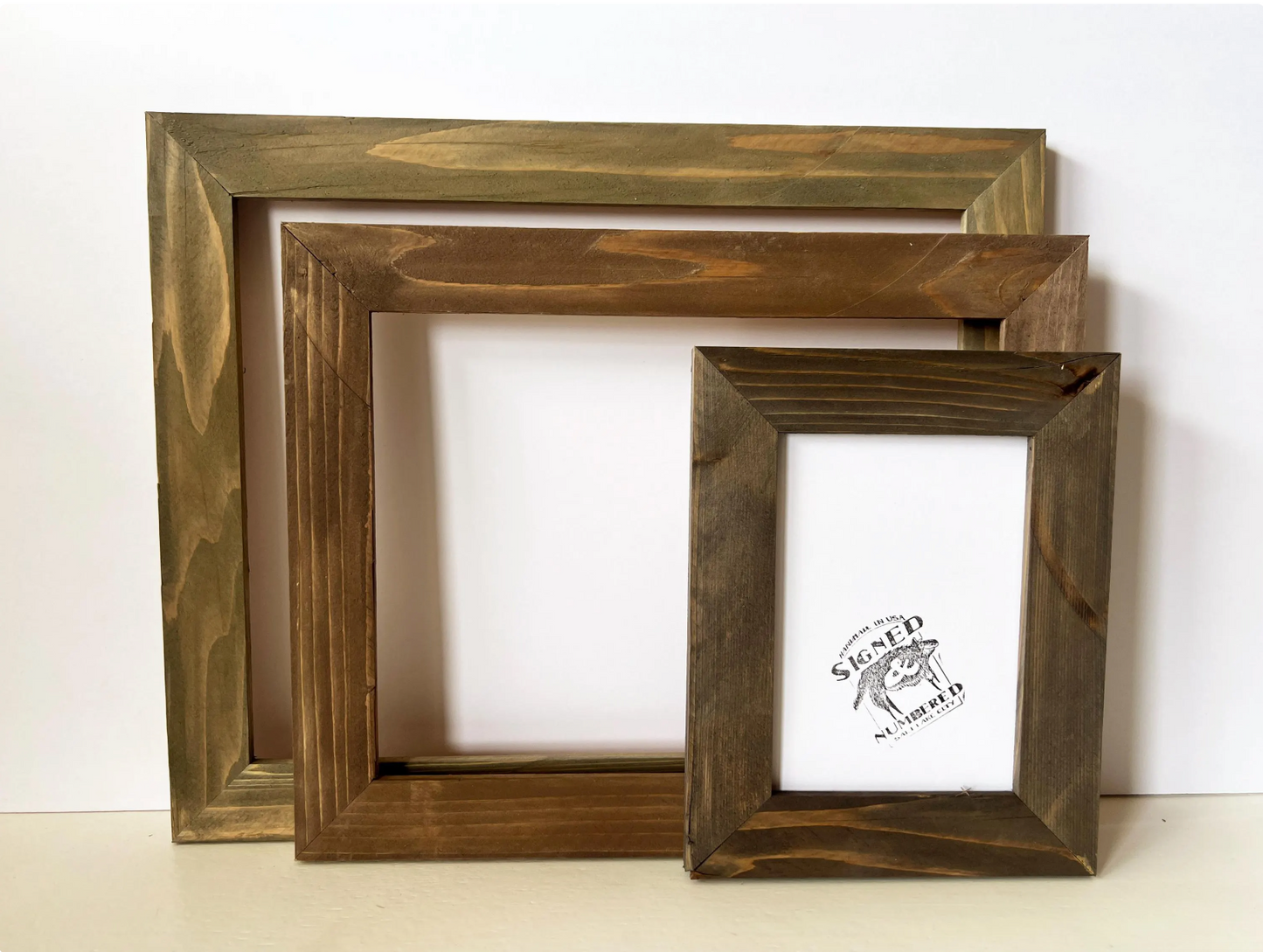 We take pride in the fact that our frames are built using environmentally-friendly materials from local vendors, we primarily use poplar and hardwood for our painted frames and have recently introduced more specialty woods.
