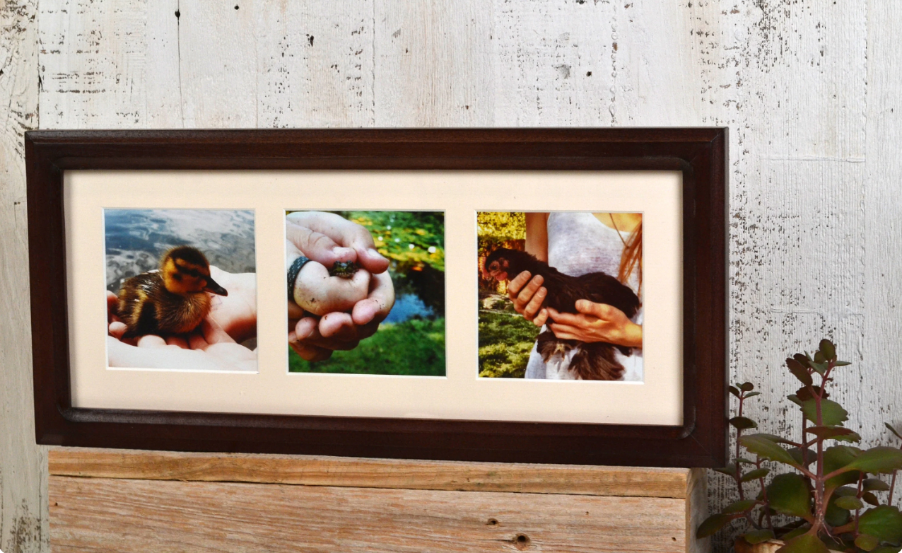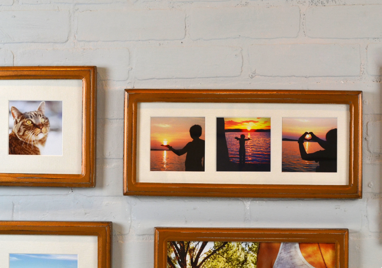 Choose your color and finish for a 6x15" frame in our 1x1 Double Cove style designed with a mat to hold three 4x4" photos