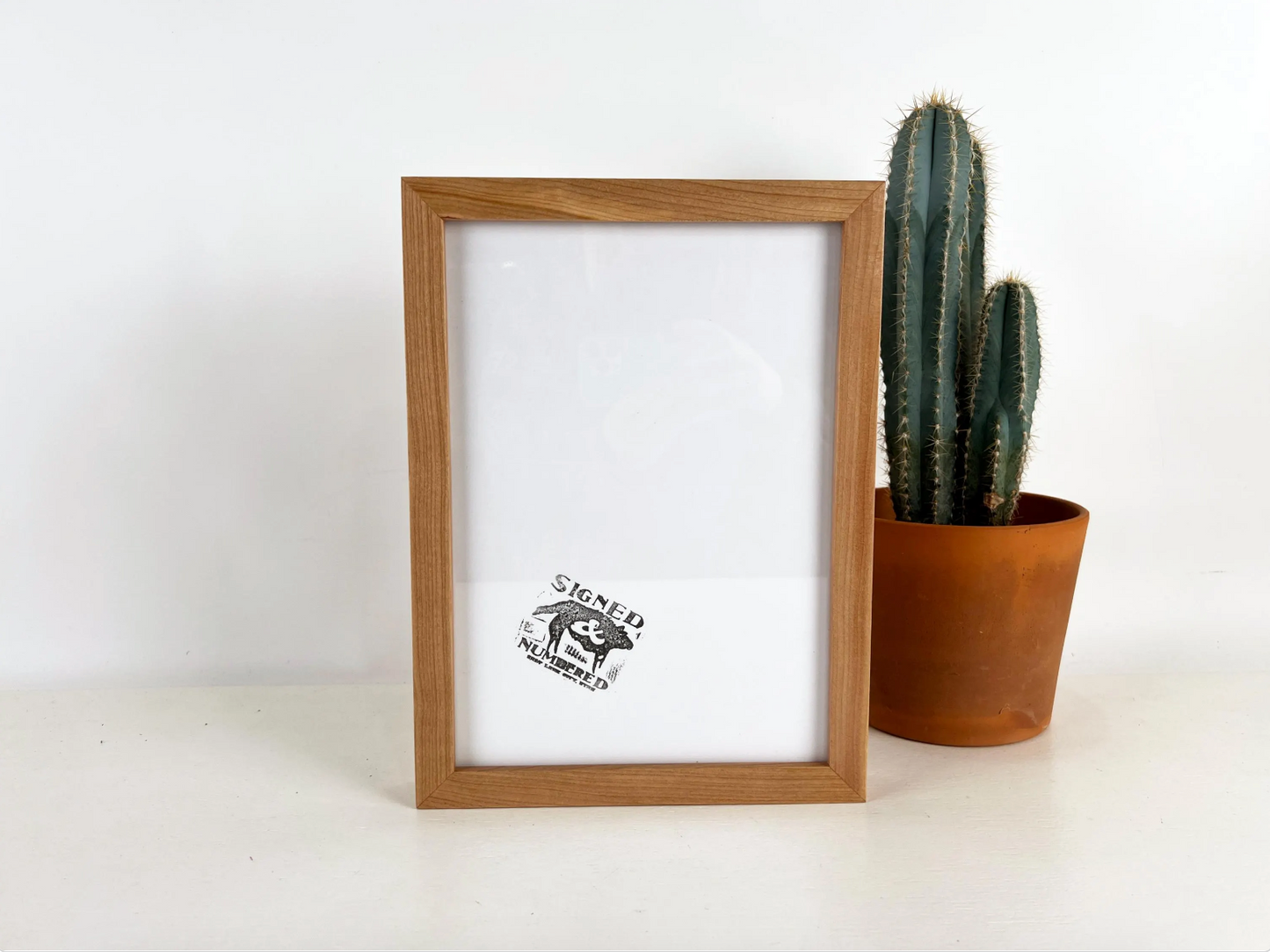 Handmade picture frames in our Deep Flat frame style and built from 100% solid natural cherry hardwood
