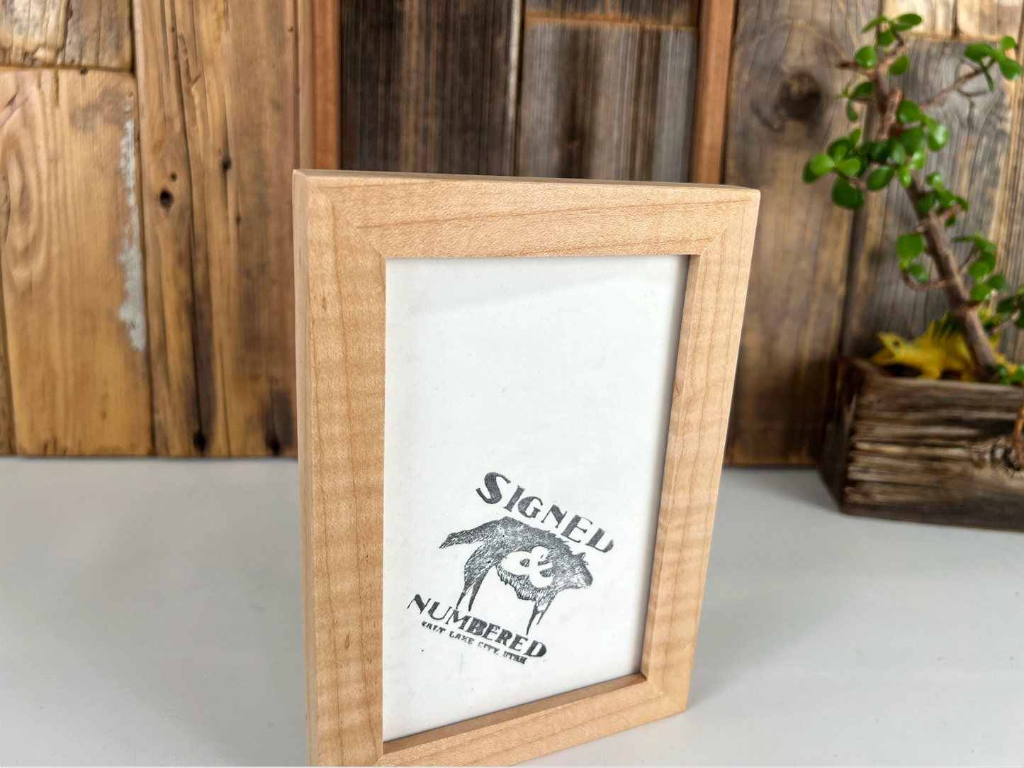 Handmade picture frames in our Peewee frame style and built from 100% solid natural maple hardwood. This frame style is approximately 3/4" wide and 5/8" deep