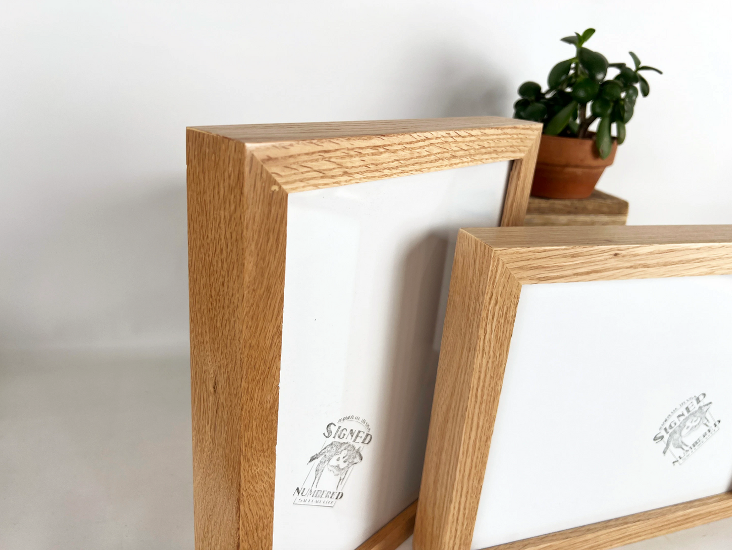 Handmade picture frames in our Deep Flat frame style and built from 100% solid natural oak hardwood